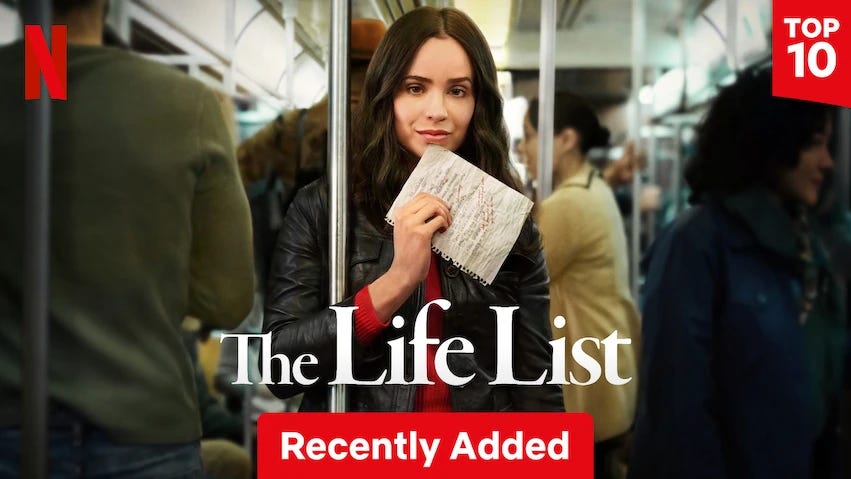 For my movie snobs, Rotten Tomatoes gave it a 47%. I don’t have a Letterboxd account, and I’m not picky, so don’t judge! But The Life List made me think and cry, which is funny considering I was supposed to be half-watching it.